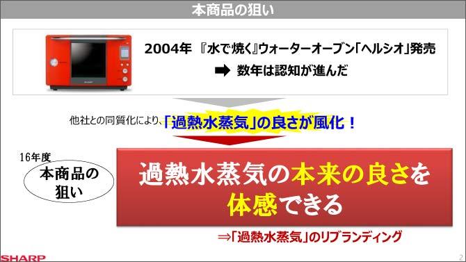 多機能オーブンレンジとして「なんでもできる」ヘルシオに対し、パンを焼いたり、惣菜や冷凍食品の温め直しする機能に特化したヘルシオ グリエ(企画書より)
