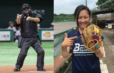 (左)審判用に形状が工夫された防具(右)ヒョウ柄のグローブを愛用する中野菜摘選手(京都フローラ)