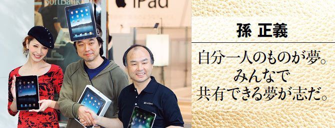 日本で2010年5月28日に発売された米アップルの多機能携帯端末「iPad」を手に最初の購入者と握手するソフトバンクの孫正義社長。(写真=時事通信フォト)