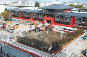 学校法人「森友学園」に売却された土地で建設工事が進む小学校=3月1日、大阪府豊中市(時事通信=写真)。
