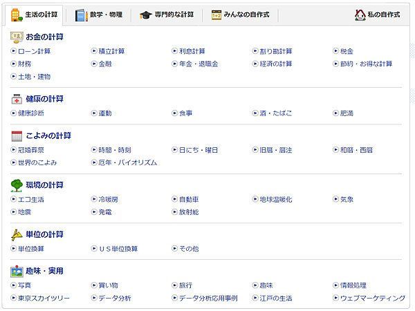 」。生活や実務に役立つさまざまな計算が1000種類以上提供されている。