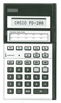 ポケットコンピュータ「PD-200」(1985年)。住宅や車のローンの計算や、保険の支払い計算など、営業マンなどが業務に使うプログラムをあらかじめセットしておき、企業に一括して販売・納入することが多かったという。
