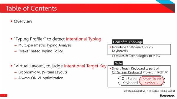 YOGA BOOKの「Haloキーボード」。普段は黒い平らな板だが、バックライトを入れるとキーボードが浮かび上がり、入力できるようになる。
