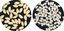 「スギ花粉米」の拡大写真。左が籾(もみ)で、右が精米したもの(白米)だ。