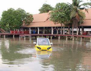 「FOMM Concept One」は水に浮き、水上走行できる。