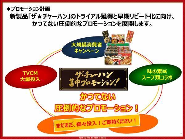 冷凍ごはんの市場自体が2009年比で124%増加。さらに冷凍チャーハンは127%アップと、チャーハン市場全体が成長している。そんな中でより美味しい冷凍チャーハンを製品化することで手作り、外食のシェアも奪える可能性がある。