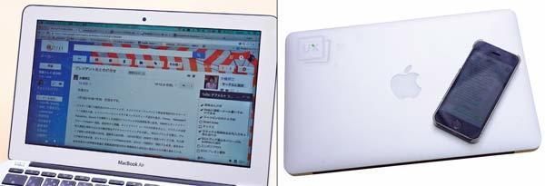 (左)メール画面。右隅に「TO DOリスト」が表示されている。(右)石黒氏が愛用するアップルのノートPCとスマートフォン。手書きのメモなどをもとに、TO DOリストや予定を入力する。