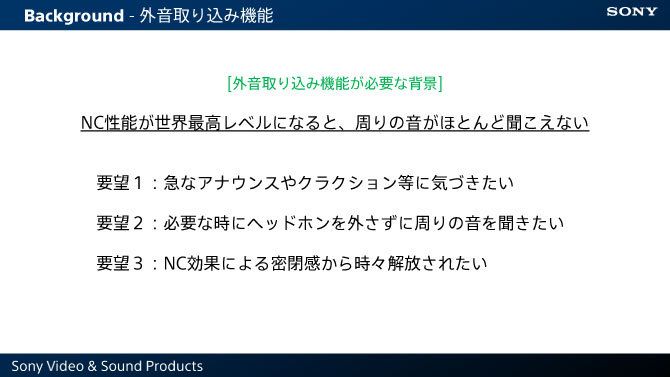 個人に合わせてノイズキャンセリング機能をチューニングする「パーソナルNCオプティマイザー」。髪型や眼鏡の有無などによる効きの差を調整する。