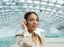 飛行機によく乗る人には何かと便利なMDR-1000X。女性にもよく似合うデザインだ。