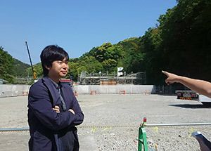 建設が進む特別養護老人ホーム「エクレシア南伊豆」(仮称)を視察する新宿区の伊藤陽平区議。