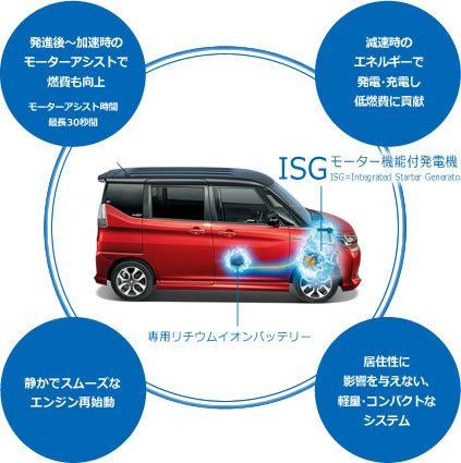 マイルドハイブリッドは、発電機をモーターとして使い、小型のリチウムイオンバッテリーにエネルギーを貯める仕組みだ。