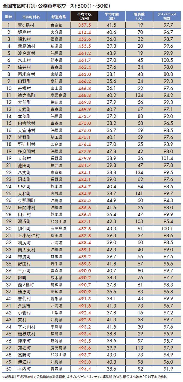 "地方公務員年収ランキング"ワースト500