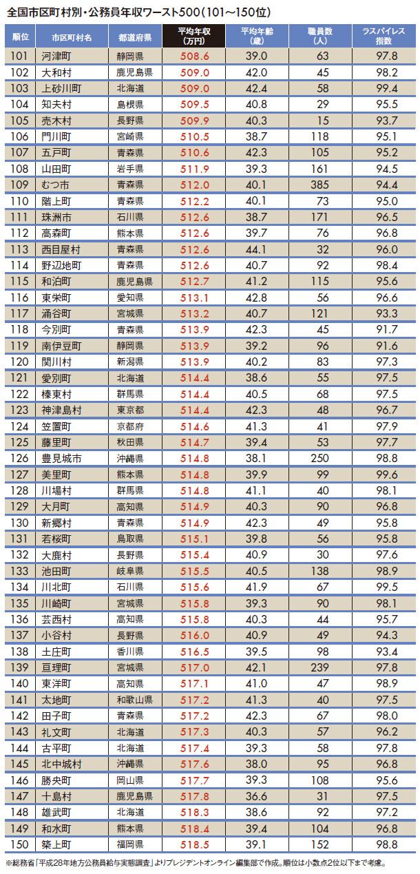 "地方公務員年収ランキング"ワースト500