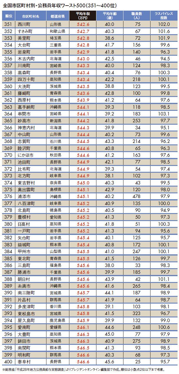 "地方公務員年収ランキング"ワースト500