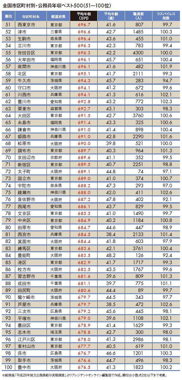 "地方公務員年収ランキング"トップ500