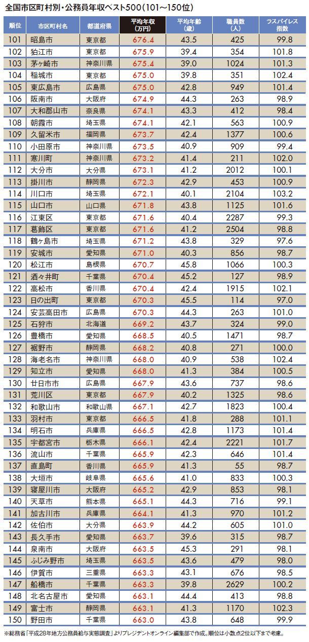 "地方公務員年収ランキング"トップ500