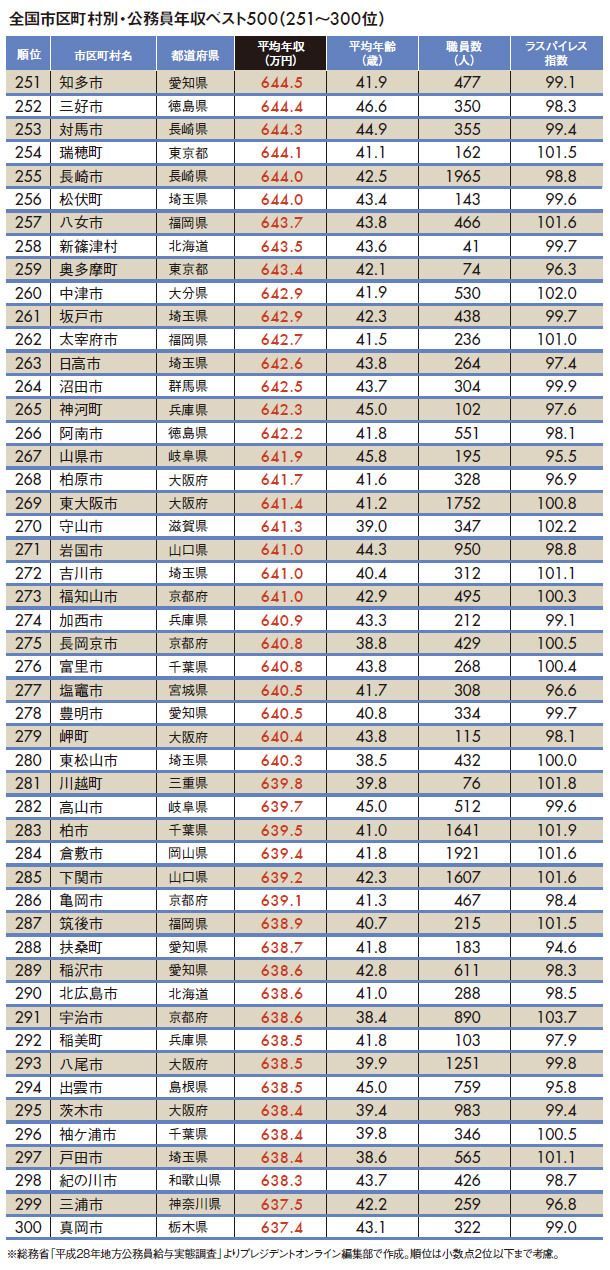 "地方公務員年収ランキング"トップ500