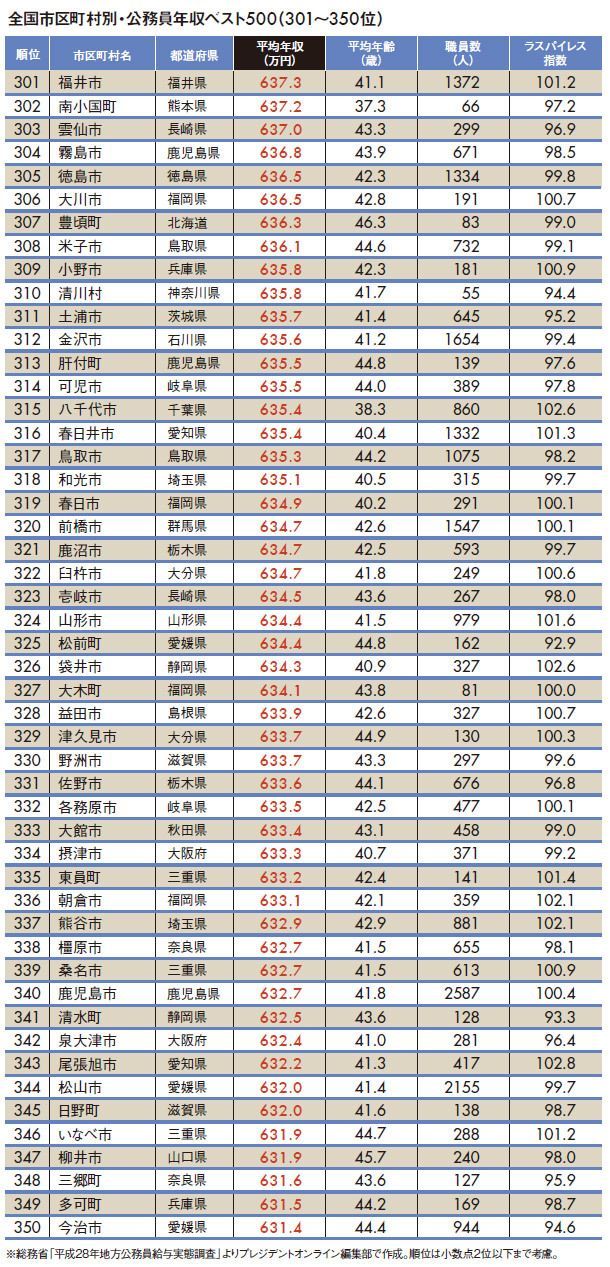 "地方公務員年収ランキング"トップ500