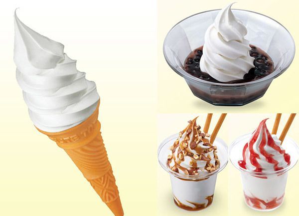 (左から時計回り)定番のソフトクリーム、クリームぜんざい、ベリークリーム、キャラメルクリーム