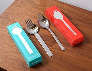 スガキヤのラーメンフォーク。左が現在の形(撮影=上野英和)