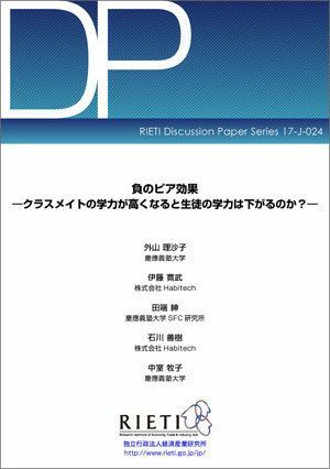中室准教授らが調査した「負のピア効果 クラスメイトの学力が高くなると生徒の学力は下がるのか?」と題されたレポート(独立行政法人経済産業研究所)。