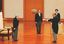 岡光事件によって、厳しい処分を受けながら、その後、厚生事務次官、宮内庁長官(在任7年)を歴任した羽毛田信吾氏(写真右)。飯島氏は「日本の官僚は世界で一番優秀。その人材は大切に守り育てるべき」と強調する。(時事通信フォト=写真)