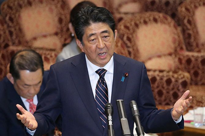 参院予算委員会で民進党の蓮舫代表の質問に答える安倍晋三首相=5月9日、国会内(写真=時事通信フォト)