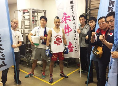 試合前の永井氏と熊野ジムの人たち(撮影=宮田伸広)