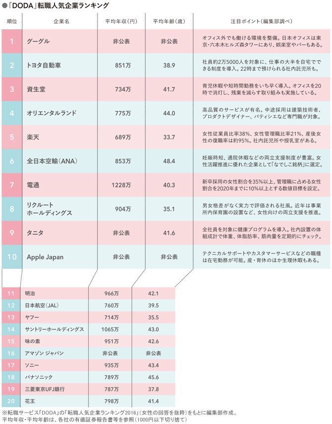 【「DODA」転職人気企業ランキング】女性への配慮、活気ある社風、共感できる理念にも注目