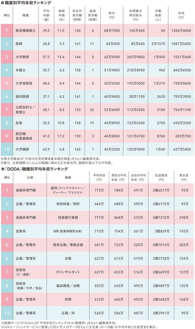 【職業別平均年収ランキング】前年比ではパイロットとCAが躍進。難関資格を要する職業も高値安定【「DODA」職種別平均年収ランキング】高度な専門知識を持っているスペシャリストがやはり有利