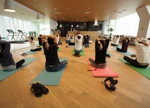 出勤後に瞑想とストレッチをする。