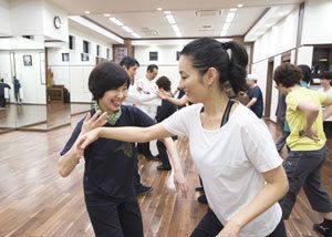 武術クラスでは「推手」という組み手の練習も。これは相手の力を受け流す、太極拳ならではの技術を身につけるもの。