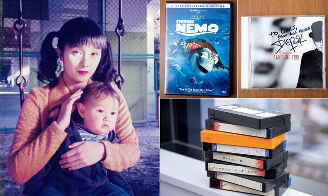 (左)東京の公園で(右上)『ファインディング・ニモ』は衝撃を与えてくれた作品で、初めて自分から感想を伝えた/母が好きだったバンドのCD(右下)「パワーパフガールズ」「サウスパーク」など、類さんの情緒を育むため、母が見せたアニメやバラエティー番組のビデオ