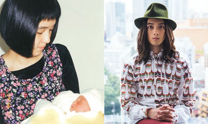 (左)母・泉さんが類さんを出産したときの写真。「僕には感覚過敏があり、保育園の子どもたちの歌声を聴くだけで逃げ出したくなるような症状がありました。忘れ物も多く、強いこだわりもあったので、母の子育ては大変だったと思います」(右)モデル・タレント 栗原 類さん