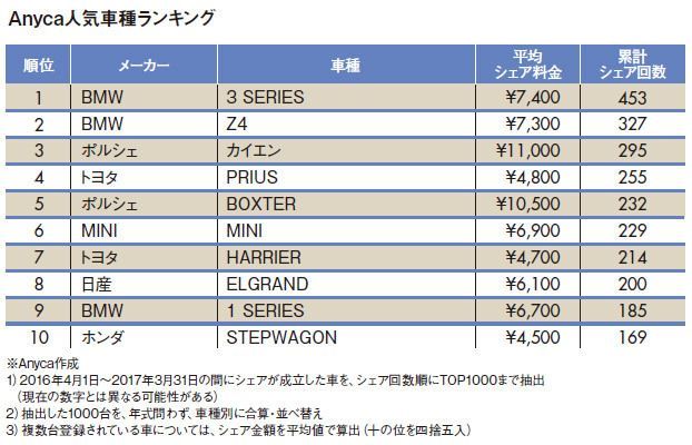 1位BMW ベンツ圏外 カーシェア人気車種