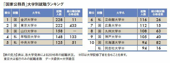 公務員試験"大学別ランキング"トップ100