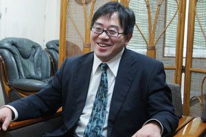山戸伸孝・アメニティ社長。ビジネスネームは「波自賀村跳男」。
