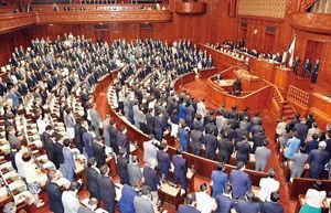 小池氏は衆議院議員時代に、議員立法として、電線の地中化を進める法案の成立を目指した。知事就任後、超党派の議員により提出され、2016年12月に、無電柱化推進法として参院本会議で可決、成立した(写真は16年5月24日に、ヘイトスピーチをなくすための対策法案が議員立法として国会の衆院本会議で可決、成立したときのもの)。(読売新聞/AFLO=写真)