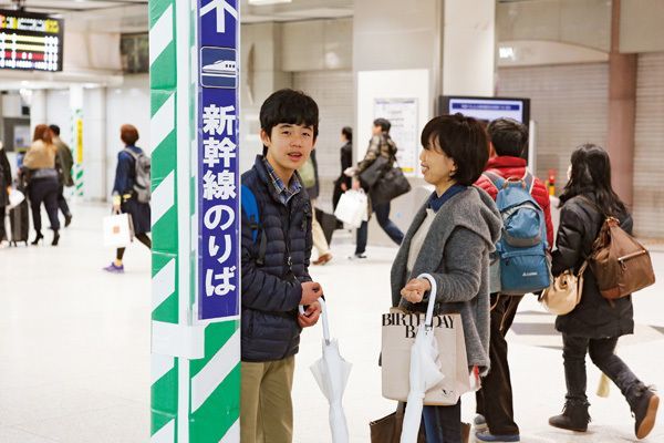 *大阪の奨励会での“修行”を終え母・裕子と新幹線で家路につく。にこやかな表情が印象的。「私が将棋を知らないので対局の内容は勝敗くらいしか聞きません。実は関西将棋会館に親子で行くのは、今日が最後。次回からは聡太一人。ちょっとさみしい」と裕子。岡村智明=撮影