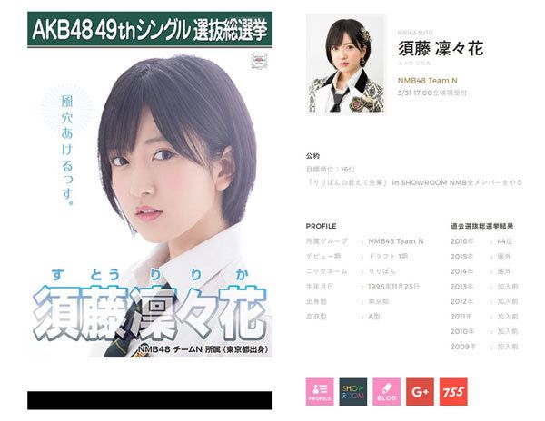NMB48 須藤凜々花さんの総選挙用ポスター(AKB48公式サイトより)