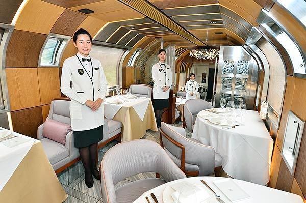 トランスイート四季島の食堂車とスタッフ