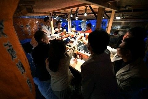 屋台で和やかに始まった座談会だったが、その後、徐々に白熱することに(撮影・佐藤桂一)
