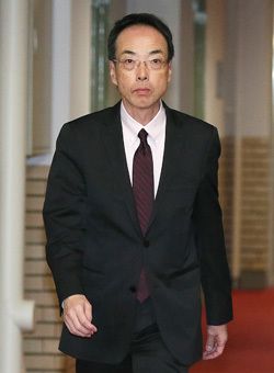 財務省、金融庁、日銀による金融市場に関する情報交換会合に向かう森信親金融庁長官=2016年11月9日、東京・霞が関の財務省(写真=時事通信フォト)