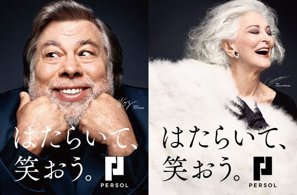 パーソルホールディングスのグループブランド「PERSOL」CMのグラフィック画像より(以下同)。写真は現役の世界的スーパーモデル、カルメン・デロリフィチェさん。85歳。