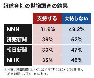 7月10日、安倍内閣の支持率について報じる新聞各紙。