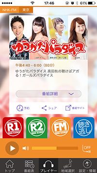 NHKラジオは「らじる★らじる」というオリジナルアプリで配信を行っている