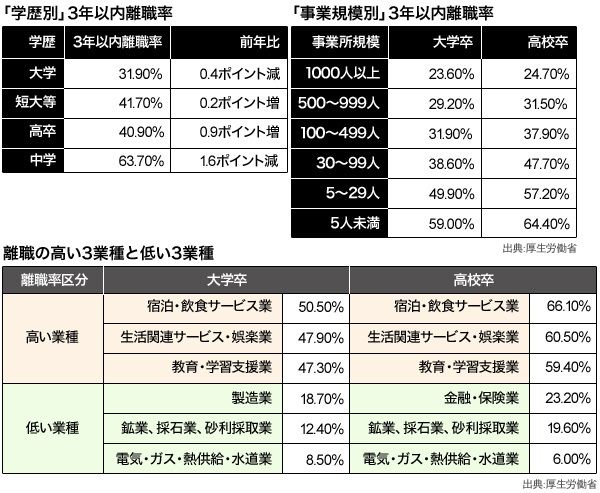 3人に2人が3年で辞める「宿泊・飲食」