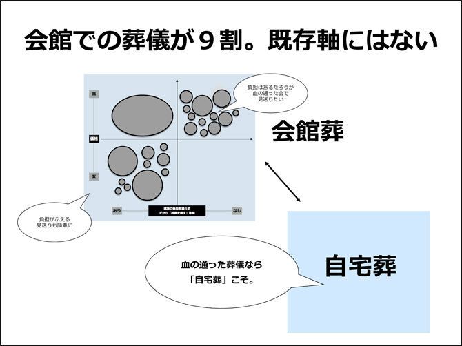 鎌倉自宅葬儀社では、3~7日間かけて自宅でゆっくりと個人をしのぶ葬儀を提案。1日目は何もしないことを推奨している(企画書より)