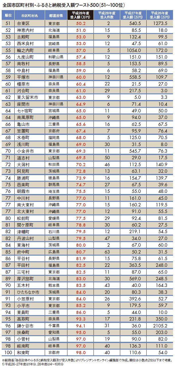 「ふるさと納税受入額」全国ワースト500
