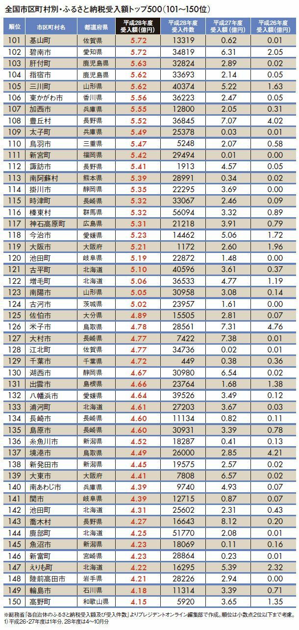 「ふるさと納税受入額」全国トップ500